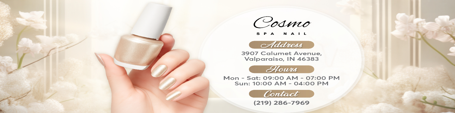 Cosmo Spa Nail is a trusted nail salon in Valparaiso, IN 46383, offering professional manicures, pedicures, nail enhancements, and relaxing spa services.